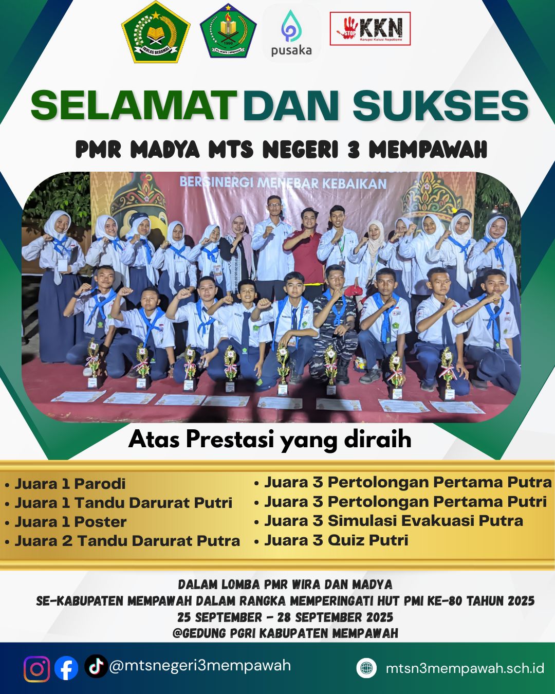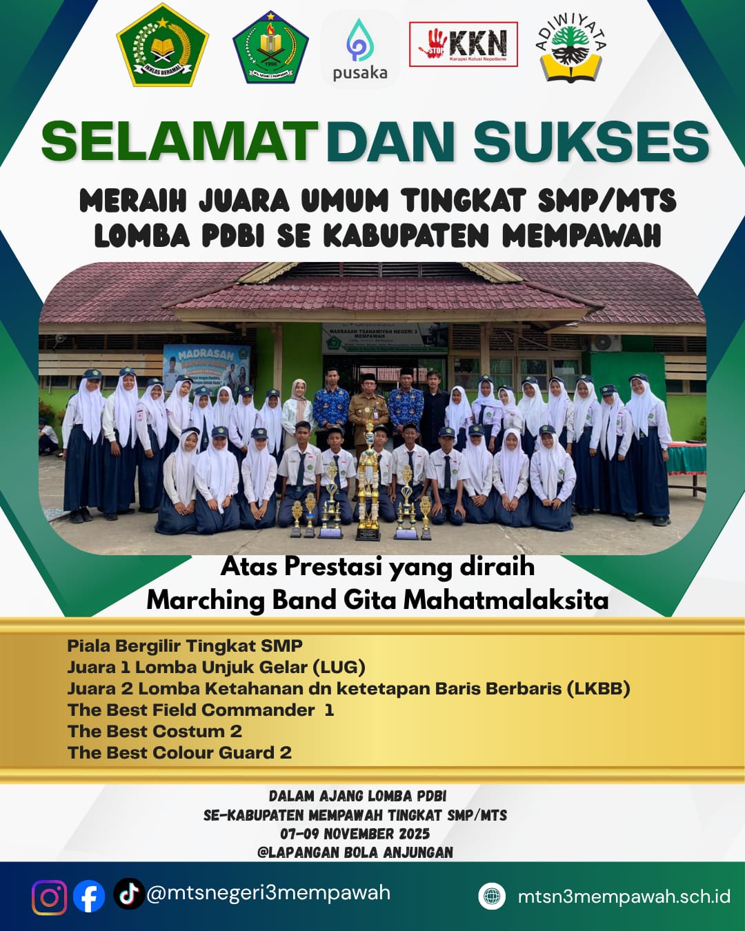 MTs Negeri 3 Mempawah meluluskan 100 persen siswanya yang berjumlah 190 siswanya. Pengumuman dan penyerehan amplop kelulusan dilaksanakan pada Senin,...