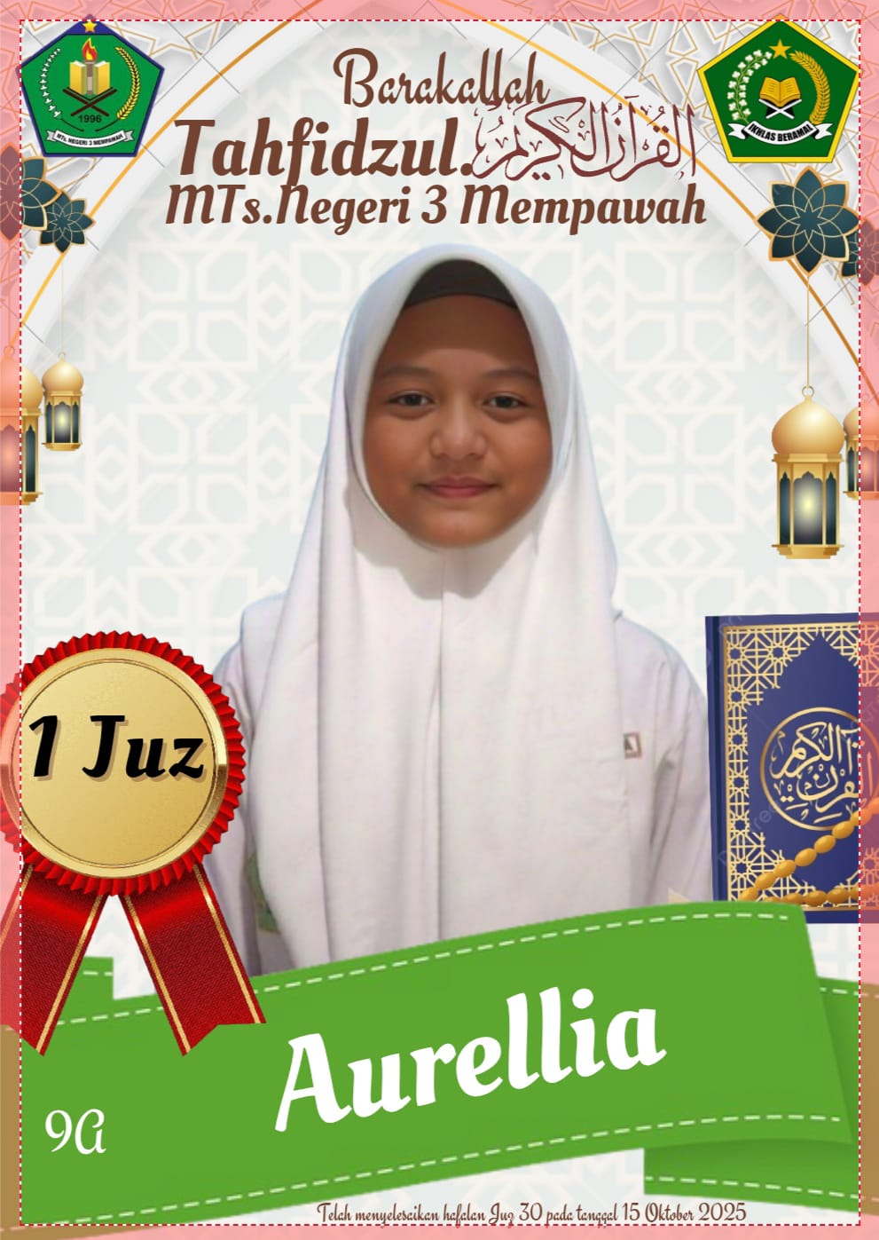 Kabar membanggakan datang dari dunia pendidikan Islam Madrasah Negeri. Salah satu siswa terbaik MTs. Negeri 3 Mempawah yang bernama. secara resmi dinyatakan lulus dalam uji petik hafalan Al-Qur’an tahap 1 Juz30/juz amma. siswa tersebut menunjukkan kefasihan dalam makhraj dan tajwid saat melalui proses pengujian di hadapan para penguji.